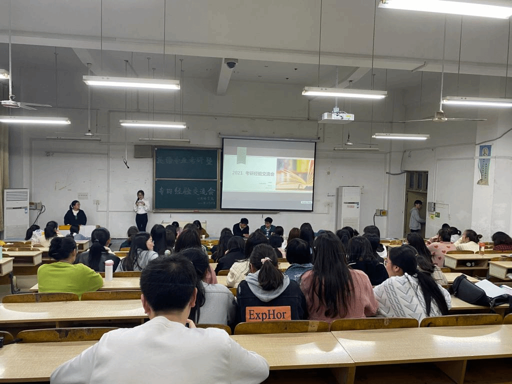 在考研经验交流环节,学长、学姐结合学弟学妹的疑问,从自身考研经历出发,围绕学习方法、学习途径、情绪调节等方面,使得同学们对考研有更加完整、正确的认识。学长、学姐们详细的讲解和幽默的讲话风格不仅舒缓了考研学生的压力,也有助于同学们增强自信心和提高同学们的专业能力,更好地为考研做好准备。在专四经验交流环节,学长学姐结合自身备考专四的经验,给学弟学妹们提供了如何选择真题、答题技巧、专项训练等许多建议。