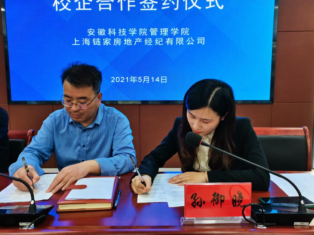 赵伟峰与孙御晓共同签署了《半岛在线客服与上海链家房地产经纪有限公司校企合作协议书》。