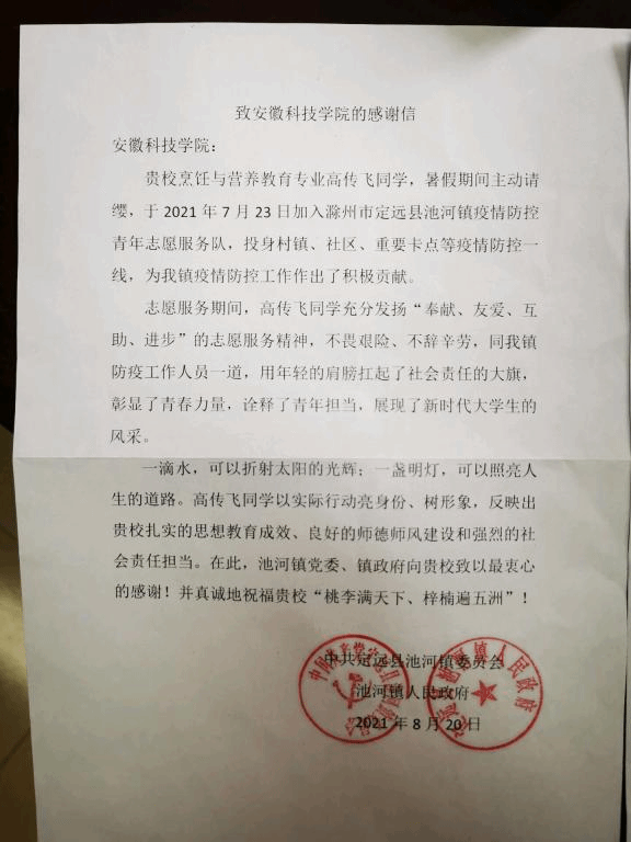疫情防控,人人有责。食品工程学院学子积极响应号召,暑期返乡后志愿报名参与家乡疫情防控工作,勇担责任,以青春之我守护着家乡土地,守护着人民群众的健康安全。