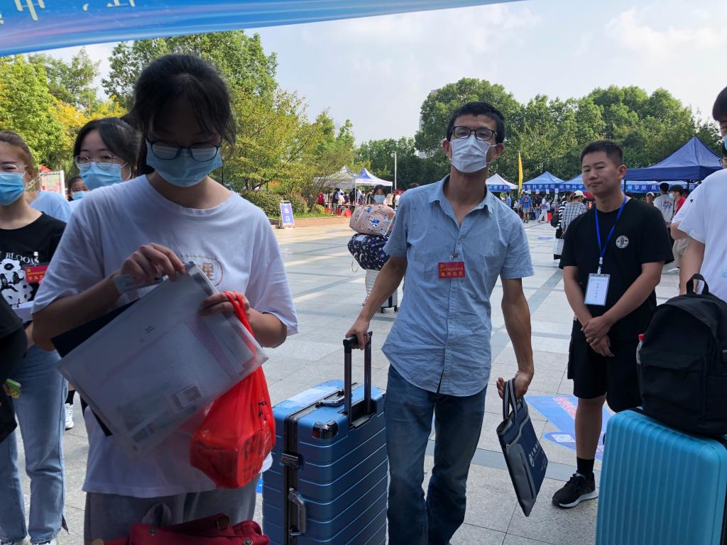 从测温点点到报到点,一名名光荣的志愿者,尽己所能,不计回报,各处奔波只为帮助新生开辟一条畅通无阻的报到之路。“遥知不是雪,为有暗香来”。白色的志愿者证在耀眼的阳光下闪着光亮,如春日细雨滋润着每一个人的心房。(特约通讯员:王传林 摄影:孟婉云 郭院婷 左丽蓉 审核:彭丽萍 编辑:张威)