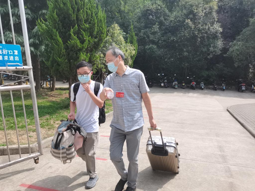 本次迎新的队伍中有这样一支特殊的小队,他们华发发白,来回奔走为新生搬运行李,接送新生前往宿舍。他们是生命与健康科学学院的教工党员。在志愿者人手紧缺的时候他们二话不说直接顶上,从消杀通道到检录处,从检录处到新生宿舍,他们的忙碌从未停止,充分发挥了教工党员的先锋模范作用。