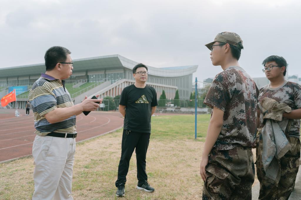 9月27日下午,农学院党委书记何世潮、党委副书记张轶辉及副院长舒英杰带领新生辅导员到田径场看望慰问军训教官和参训学生。