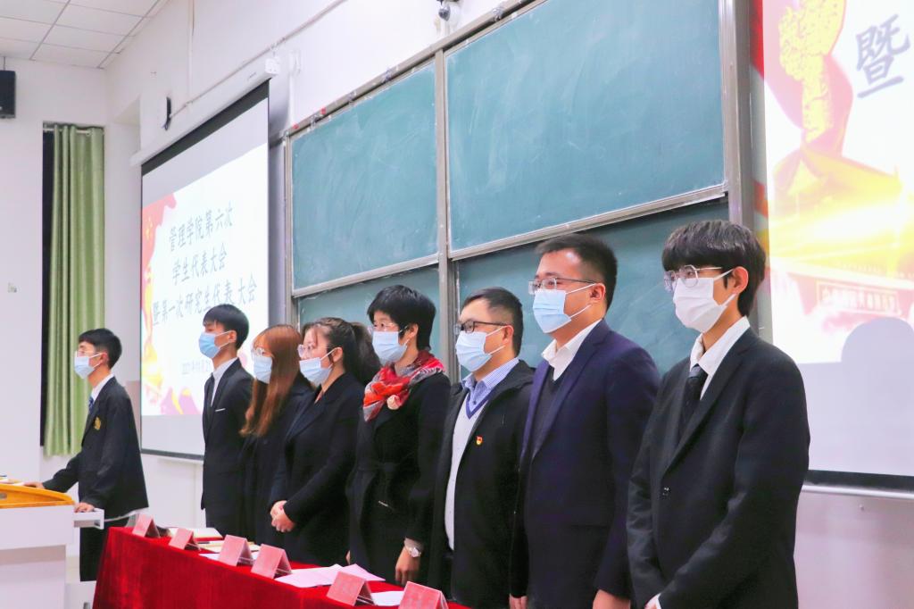 11月20日晚,管理学院第六次学生代表大会暨第一次研究生代表大会在致知楼C111教室顺利召开。院党委副书记、纪委书记陶漫,党委委员、党政办主任李永鹏,团委副书记方辛、江旭聪出席会议。