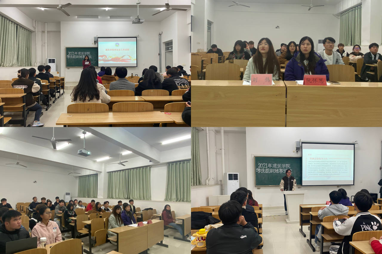 为更好的推进学生组织的工作运行,11月25日晚,2021年建筑学院学生组织述职评议工作会议在致知楼A109顺利展开。建筑学院专职辅导员阮怀思、校学生会主席团成员刘伟担任此次评议的评委,参会人员为建筑学院学生组织执行主席与相关负责人。