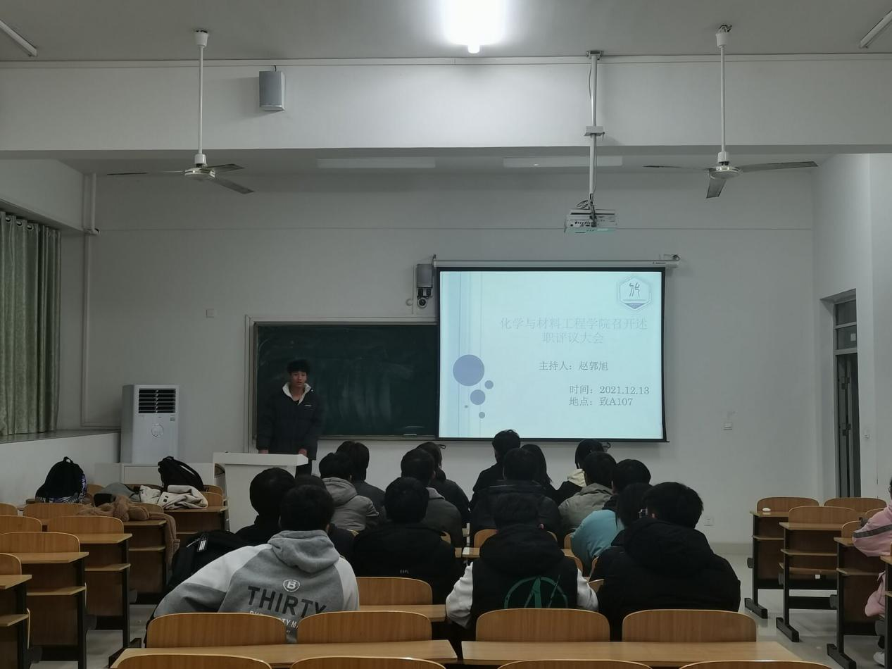 为切实提高学生会工作水平,激发学生会的组织活力和发展动力,依据《半岛在线客服学生会述职评议制度实施条例(试行)》规定,化学与材料工程学院于12月13日在致知楼A107教室召开学生会期中述职大会。学院专职辅导员李潮升老师、学生会主席团成员范佳龙以及学生会成员参会,会议由学院学生会主席团成员赵郭旭主持。