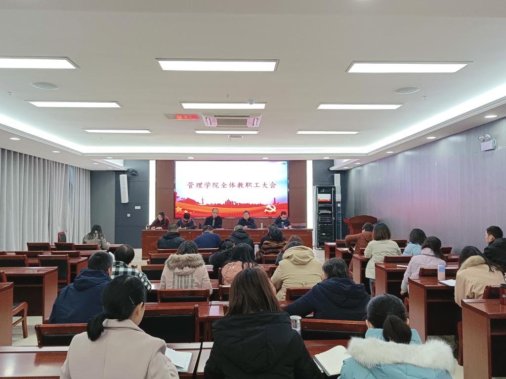 12月22日下午,管理学院在龙湖校区西辅楼111会议室召开期末全体教职工大会,梳理总结年度工作,布置期末及寒假重点工作。学院党政领导及全体教职工出席会议,会议由党委副书记、院长陈传万主持。