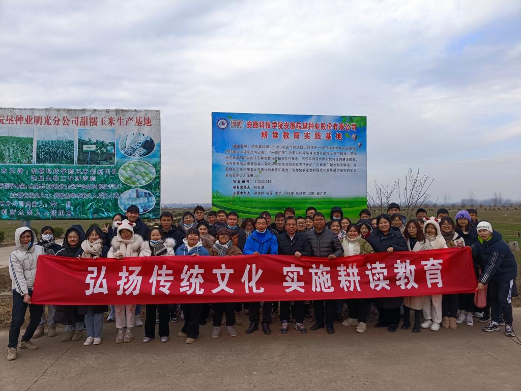 为全面落实立德树人根本任务,充分发挥耕读教育的综合育人作用,进一步培养和提高学生的创新创业意识与能力,12月28日,农学院党委书记何世潮、专职辅导员杨孝延带领2018级相关专业50余名同学前往安徽皖垦种业股份有限公司明光分公司开展大学生创新创业观摩暨耕读教育实践基地挂牌仪式。安徽皖垦种业股份有限公司明光分公司总经理马梓耀、农科所所长储焰芳等热情接待了何世潮一行。
