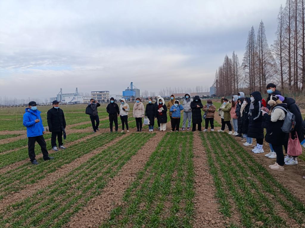 马梓耀还陪同何世潮一行参观了安徽皖垦集团明光分公司的软麦稀播繁殖田、潘村湖农场仓储烘干中心、潘村湖农场农科所、皖垦种子加工中心,详细介绍了良种繁育、种子生产加工及包装流程。在小麦良种繁殖实验田内,在储焰芳的指导下,同学们还实地开展了通过小麦有效分蘖数进行小麦良种亩产量的计算,寓教于实践,强化了同学们专业知识认知。