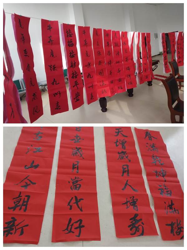活动现场,书法家们或泼墨挥毫、或笔走龙蛇……,不一会儿,一幅幅散发着清新墨香的喜庆大红春联纷纷呈现。春联既有挥别牛年、喜迎虎年辞旧迎新的美好愿景,也有平安吉祥、和谐发展的励志高歌。浓浓的情意、真诚的祝福,洋溢于字里行间,让大家感受到这数九寒冬的阵阵温暖和浓厚的节日气息。