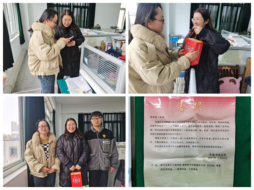 1月12日,电气与电子工程学院建筑电气与智能化专业学生潘汉清、王雪组成寒假实践团队,回到母校——“蚌埠一中”开展本次活动。