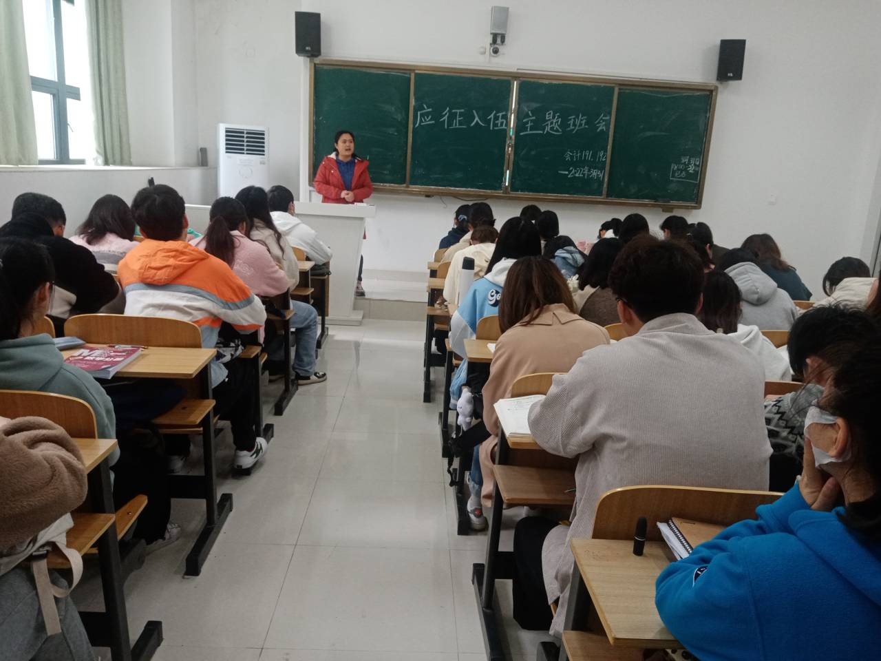 为帮助大学生更好地了解应征入伍政策,提升大学生参军入伍的积极性,3月28日-4月2日,财经学院各班级先后召开大学生应征入伍宣传教育主题班会。