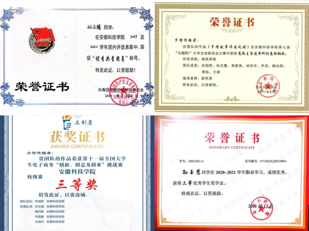 孙玉慧,女,中共预备党员,安徽合肥人。建筑学院2019级土木工程专业学生,现任建筑学院土木工程专业193班组织委员、易班班长,院学生会执行主席。曾获得优秀学生干部、优秀共青团员、校三等奖学金、安徽省大学生生物标本制作大赛选拔赛二等奖、“互联网+”大赛铜奖、“三创赛”三等奖等荣誉。