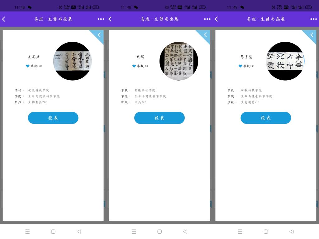 本次活动共分为易班线上投票、观众摆点投票和评委打分三个环节,作品涵盖绘画、书法、摄影三个类别,书法包括硬笔组和软笔组两个部分。在前期准备工作就绪后,学院通过宣传鼓励各班同学积极参加,吸引了许多艺术爱好者的踊跃报名,到截止日共收到36幅书画摄影作品。作品内容紧扣主题,或讴歌五四运动的历史伟绩和里程碑意义,或体现五四精神的丰富内涵,或呈现新时代青年的精神面貌和理想追求,题材丰富、形式多样、风格鲜明。征集的书法作品有奇崛遒劲的楷书、流畅飘逸的行草书、古朴俊逸的隶书,书体各异却殊途同归——皆以笔墨颂党恩;绘画作品中,或描绘山河壮锦、或挥洒碧血丹心、或临摹战“疫”英雄,画意跃然纸上——皆以丹青绘忠诚;摄影作品多是校园风景与班级风采的定格,将稍纵即逝的平凡化为不朽——皆以光影抒真情。所有作品集创新性、观赏性于一体,健康向上、立意新颖、情感真挚。经过最终评定,中药学203班郭院婷斩获摄影组第一名,药物制剂212班王雨倩获得绘画组第一名,生物工程213班李雅倩获得书法硬笔组第一名,中药学212班姚瑶获得软笔组第一名。