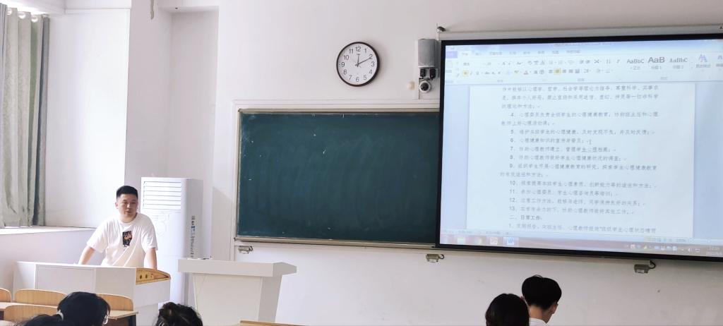 化学与材料工程学院心理指导老师沈竞成在致知楼C109教室为19、20和21级所有心理委员开展了一次培训。沈竞成分别从心理委员的职责定位、工作意义以及工作方法等方面展开叙述,并且用生动的案例从大学生心理健康的定义、心理问题的诊断标准、大学生常见心理问题及影响因素和大学生自杀危机干预四个方面帮助心理委员们梳理了基本的心理健康知识和危机识别干预方法,要求大家通过观察、交谈等方式,深入了解同学的心理健康状况,对可能存在心理危机的同学提供帮助和引导,通过交谈疏导、向辅导员寻求帮助、预约心理咨询中心等方式,帮助同学解决遇到的心理问题。他希望大家在心理工作中善于运用所学到的理论知识,帮助大家共同应对大学里遇到的各种挑战,成为一个身心健康的人。