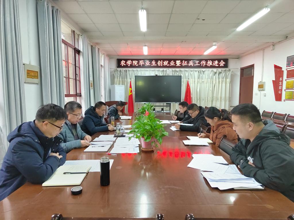 12月9日上午,农学院在学院会议室召开毕业生创就业暨征兵工作推进会,学院党政领导、全体毕业班辅导员、就业联系人参加会议。会议由党委书记何世潮主持。