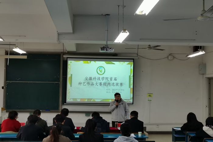 3月29日,“半岛在线客服首届种艺作品大赛暨全国高校种艺作品大赛校内选拔赛”在新知楼A110成功举办。教务处副处长、创新创业学院副院长高青海和农学院党委副书记张轶辉到场指导并致辞。
