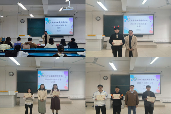为加强学生心理健康教育,丰富学生的校园生活,4月1日上午,生命与健康科学学院在新知楼B202教室举办心理剧决赛。学院党委副书记、纪委书记彭丽萍,专职辅导员孙玉楼、沈靓受邀担任本次比赛的评委,此外还邀请了学院学生会主席团成员卢玉青,艺体中心主任祝徐强,新媒体中心主任郭院婷,易班工作站站长程雪艳担任评委。2021级、2022级入选决赛各班级以班级为单位参加比赛。