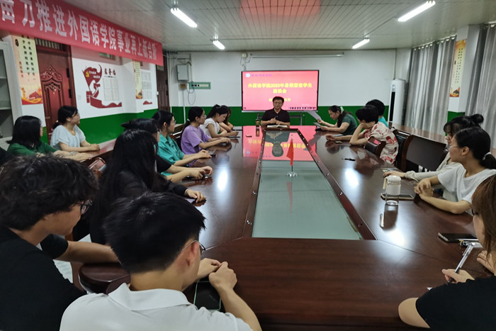 为持续做好暑期留宿学生管理和服务工作,7月21日下午,外国语学院在学院会议室召开暑期全体留宿学生座谈会。学院党政领导、有关教师和学院全体留宿学生参加会议,会议由学院党政办主任陈慧中主持。