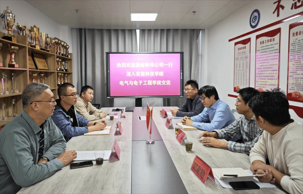 10月31日下午,国能蚌埠发电有限公司设备部主任马立增、颜纲要等一行四人来电气与电子工程学院洽谈校企合作项目事宜。学院在西辅楼308会议室召开了座谈会,学院党政领导和骨干教师代表出席了会议,会议由电气与电子工程学院副院长国海主持。