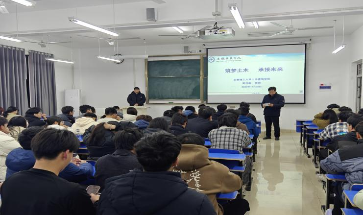 11月30日下午,安徽理工大学土木建筑学院院长、二级教授、博士生导师荣传新教授,在龙湖校区尚行楼C207为我校师生作题为“筑梦土木,承接未来”的学术报告。建筑学院副院长吴伟东教授主持报告会。