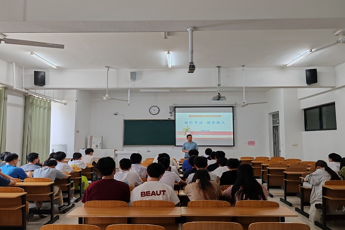 学风建设工作指导老师、学院专职辅导员陈更强对学习发展部和学习委员本学期的工作给予肯定。结合前期学风督导中发现不足之处,分析问题存在的原因,提出改进方案。他强调,学风建设是学院教育工作的重中之重,需全体人员共同努力,形成合力。针对学期中后期,部分学生在学习中可能出现的松懈情况,他以“行百里者半九十,致胜利者积跬步”要求学习委员创新工作方法,加强管理和引导,以浓厚班级学习氛围,提升班级整体学风。随后,他带领与会人员学习诚信考试相关文件,强调诚信应考的重要性,要求各班以专题班会形式开展诚信考试暨考风考纪教育,签订诚信考试承诺书,推动诚信考试的意识入脑入心,开展考试“零违纪”活动。