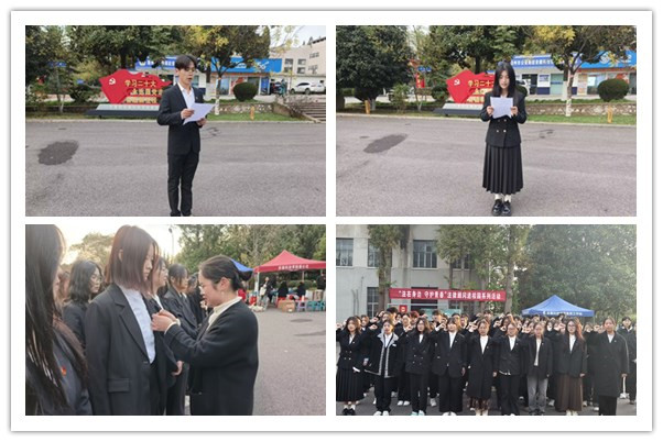 仪式上,杨小晗和姜毅为新发展团员佩戴团员徽章,并由姜毅带领全体新发展团员进行庄严的入团宣誓。