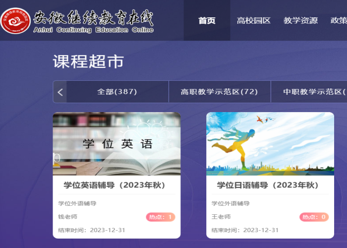 附件:安徽继续教育在线平台学位外语辅导课程(2023秋).docx