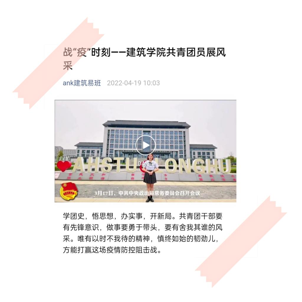 团支部录制的《战“疫”——共青团员的中坚》视频,充分体现了广大团员青年在疫情防控阻击战中贡献青春力量的热情和决心。视频中,张雨欣同学就当下疫情形势进行了系统地讲解,她号召全体共青团员要发挥党的助手和后备军作用,带领班级学生积极作为。罗志娟同学讲述了疫情防控期间建筑学院学子积极参加劳动实践、体育锻炼和文化活动,号召广大青年继续争当表率,以实际行动坚定战胜疫情的决心和勇气。该视频在半岛在线客服建筑学院易班微信平台发布后,反响良好,得到师生一致好评。