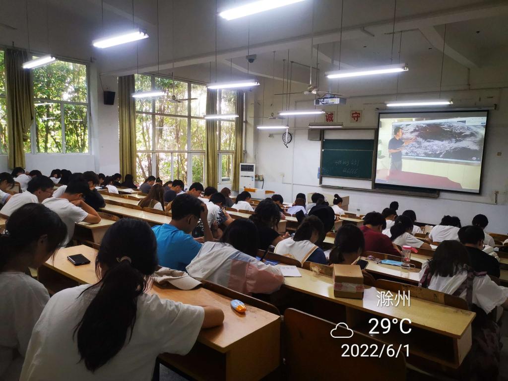 凤阳县气象台台长、高级工程师袁学所通过PPT展示了“凤阳农业气象服务概要”情况,详细介绍了凤阳县气象台的气象检测、气象预报预警、农业气象服务基本情况和周年服务方案等工作。袁学所还解答了现场同学的一些问题,并勉励大家好好学习,欢迎大家毕业后从事农业气象服务方面的工作。