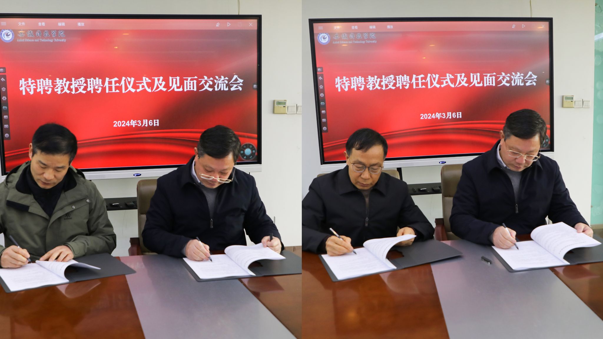黄远友简要介绍学校基本情况,指出特聘教授是学校师资发展力量的重要组成部分,有利于拓展学院专业发展空间,提升学院科研发展水平,完善师资结构和团队建设,为学校可持续发展提供人才支撑和智力保障。会上,黄远友代表学校与张春晖、王长路两位教授签订了特聘教授聘任协议书。