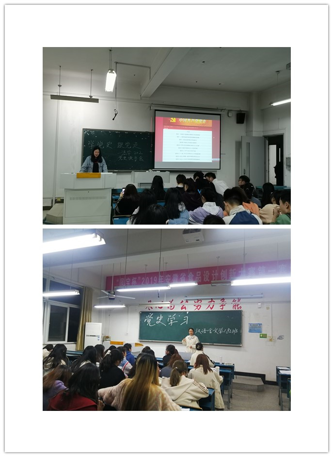 活动中,各班级通过集中学习、自主学习、专题研讨、视频观摩等形式,带领大家认真研读习近平总书记《论中国共产党历史》《中国共产党简史》等书籍,教育引导同学们了解党的光辉历程、感悟党的初心使命、领会党的理论创新、传承党的红色基因。
