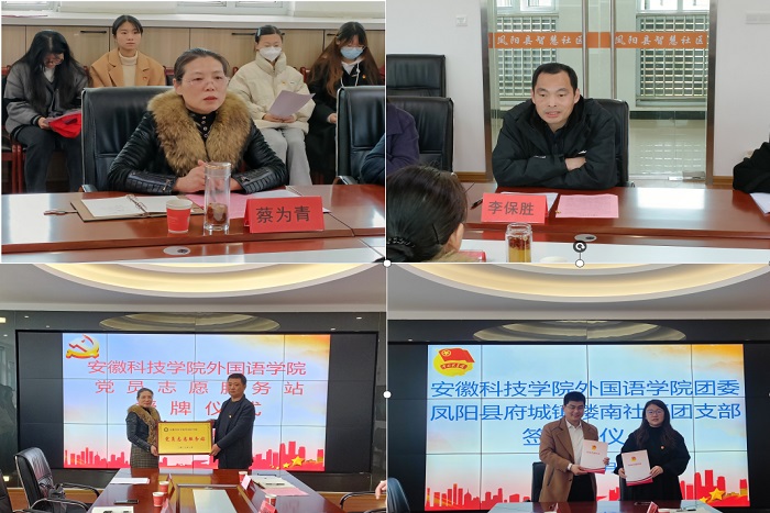 为促进校地合作,近日,外国语学院党委书记蔡为青、副书记张海亮、团委副书记宋兵兵、专职辅导员张薇薇以及学生党员、优秀团员代表一行15人,赴凤阳县府城镇楼南社区开展党团结对共建活动。凤阳县府城镇党委副书记李保胜、府城镇党委组织部部长方晓晓、楼南社区党总支书记马长顺、楼南社区团委书记王丹丹参加活动,活动由方晓晓主持。
