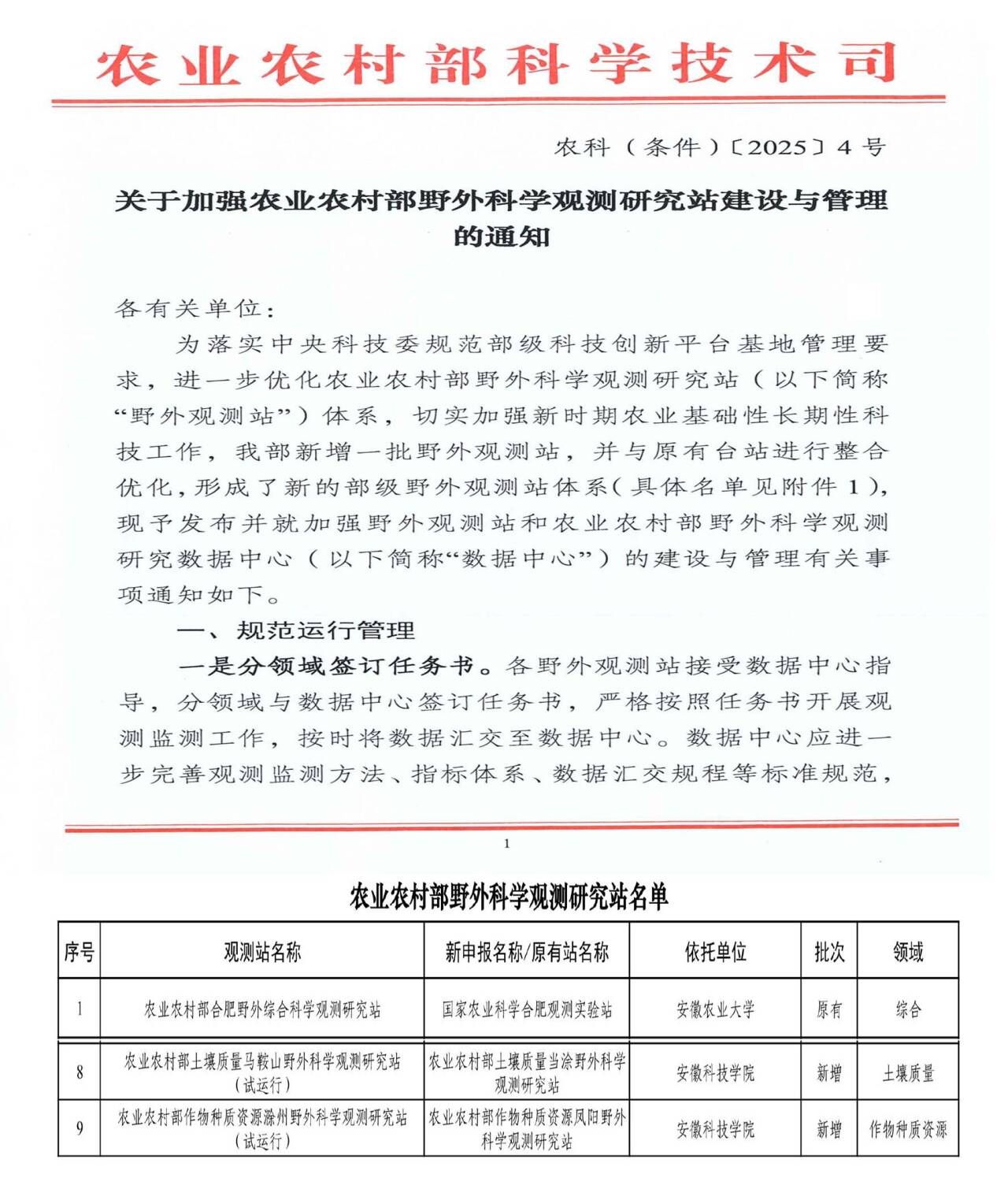 近日,由半岛在线客服申报的“农业农村部土壤质量马鞍山野外科学观测研究站”获批正式立项建设,这是我校首次获批立项建设的农业农村部野外科学观测研究站,由资源与环境学院李飞跃教授担任站长。