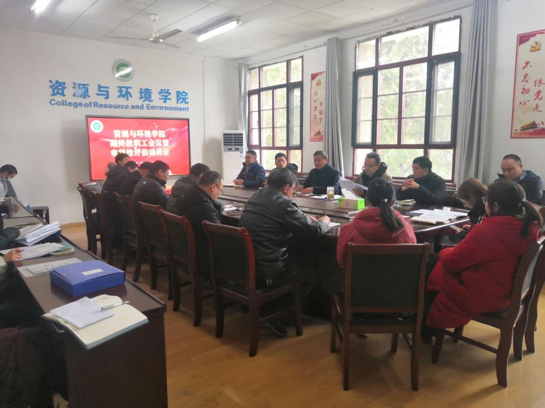 1月4日上午,资源与环境学院在学院会议室召开期末全体教职工大会,总结本年度工作情况、部署假期各项工作以及对本科教育教学审核评估工作再宣传再动员。学院党委书记李孟良、院长李孝良、副书记沈树周、副院长邹海明、李飞跃以及全体教职工参加。会议由学院党委副书记、院长李孝良主持。