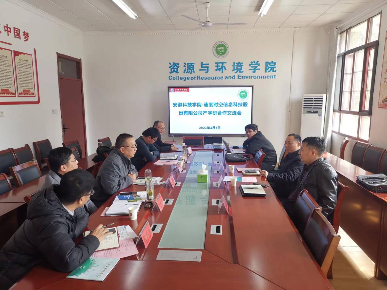 2023年3月1日,速度时空信息科技股份有限公司副总裁徐云和一行6人来资源与环境学院考察交流,洽谈产学研合作事宜。资源与环境学院党委书记、院长李孝良、副书记沈树周、副院长李飞跃、农业资源与环境系主任赵建荣、地理信息科学系主任张振国出席会议,半岛在线客服科研处副处长李同杰受邀参加会议。