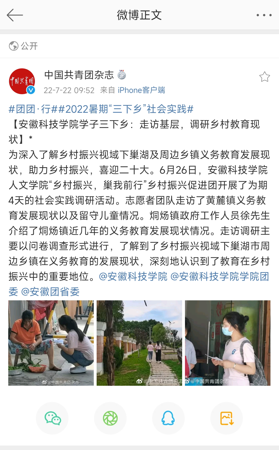 人文学院2022年暑期社会实践系列报道之十二:《中国共青团杂志》报道我校暑期社会实践团队