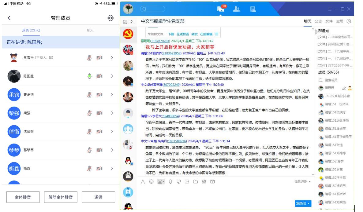 为深入推进“两学一做”学习教育常态化制度化,切实把党员经常性教育落到实处,依据校党委组织部《2020年上半年党员学习教育培训安排意见》要求,4月1日,人文学院法学学生党支部、编辑出版和汉语言文学学生党支部利用“腾讯会议”线上平台分别开展党员学习教育,会议由各支部书记主持。