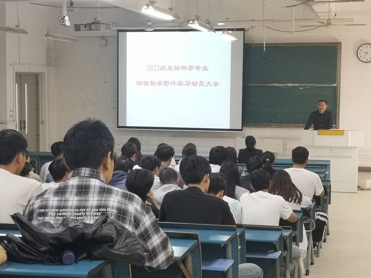 根据2023级生物科学专业人才培养方案以及《动物学野外实习》和《植物学野外实习》课程教学大纲要求,5月10日上午,生命与健康科学学院在新知楼B304举行2023级生物学科专业动植物学野外实习动员大会。学院党委副书记、副院长(主持工作)钱立生,学院党委副书记彭丽萍、实习带队教师、班级辅导员及2023级生物学科专业全体学生参加此次会议,会议由刘华彬博士主持。