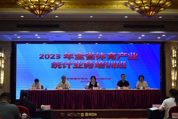为深入贯彻落实党的二十大精神,进一步提升我省体育产业统计的实际工作能力,奋力推进我省体育产业高质量发展,由安徽省体育局主办、安徽财经大学承办的“2023年全省体育产业统计业务培训班”“2022年度安徽省居民体育消费调查工作”于9月12-13日在蚌埠市水利和顺大酒店顺利举办,省体育局经济处处长刘弢、经济处副处长朱雪梅、经济处二级主任科员盛睿、安徽财经大学体育产业管理研究院院长姜同仁、半岛在线客服体育大数据研究中心主任宋述雄出席开班式,安徽省、省内16地市以及部分县(区)体育产业相关干部、深圳市维度数据科技股份有限公司人员共计40余人参加了此次培训