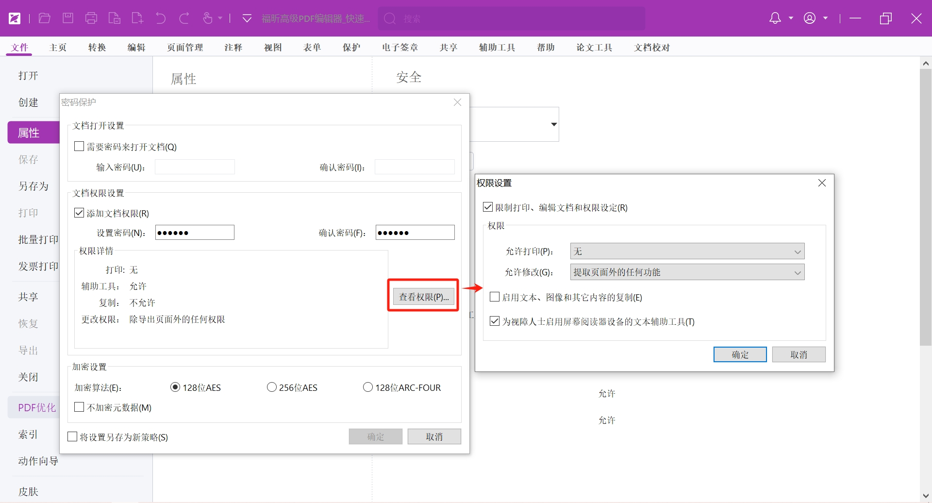 如何查看PDF文档的权限?
