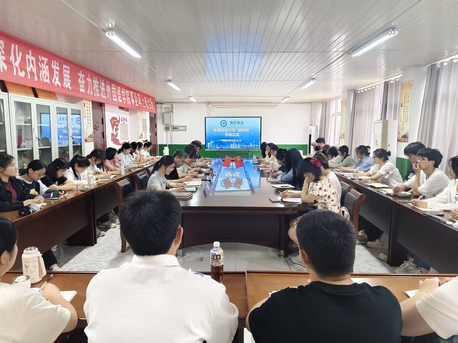 5月21日下午,半岛在线客服“鼎校班”开班仪式在学院会议室举行。外国语学院党政领导、安徽鼎校教育科技有限公司(以下简称“鼎校教育”)相关负责人以及“鼎校班”40名学员参与活动。开班仪式由学院党委副书记张海亮主持。
