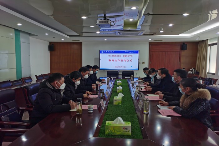 何家祥和赵伟峰代表双方签署了教育合作协议。根据协议,我校将充分发挥高等学校优势特色,围绕发展规划、教学改革、师资发展、课题研究等方面与明光市教体局开展深层次合作,更好地推动校地教育事业又好又快发展。