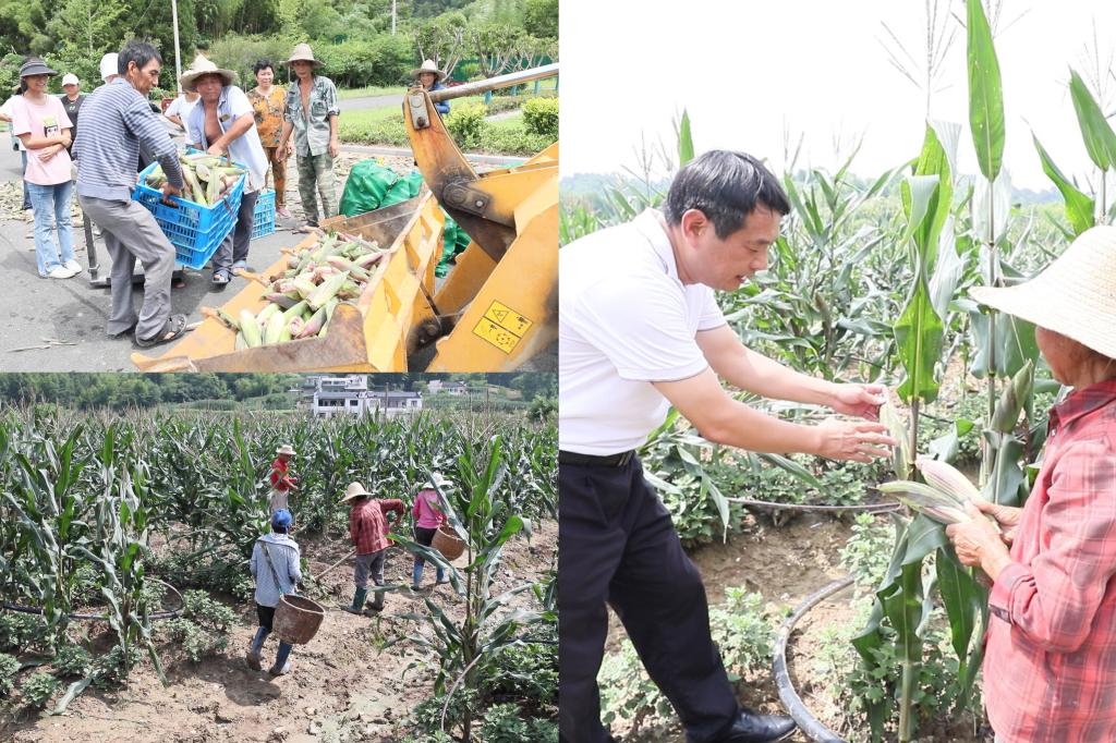 在溪头镇桃源村的菊花地上,菊花长势良好,半岛在线客服歙县贡菊科技小院驻站研究生公维勇、方俊超和村民正顶着烈日抢收玉米。采收的过程中,大家脸上洋溢着丰收的喜悦,一筐筐玉米被采摘下来称重、分销。