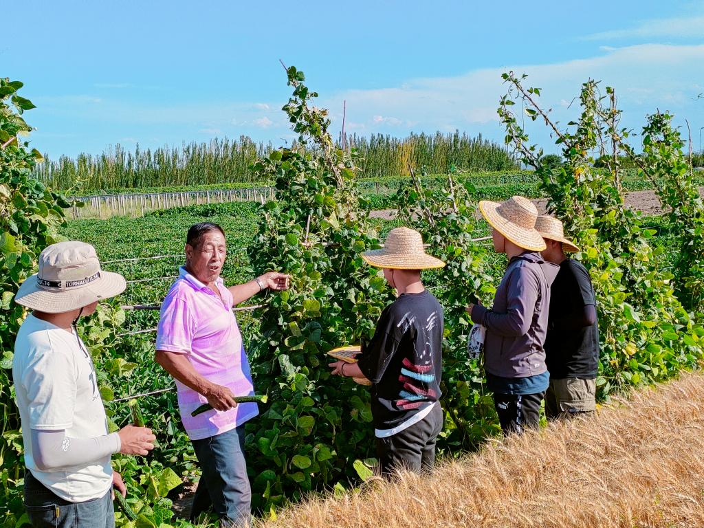金秋8月,园艺学院周龙老师带领小葡萄串起大产业团队的8名研究生来到和田地区进行科技志愿服务。服务队在和田市吉亚乡玉叶村温室大棚开展葡萄标准化栽培管理示范工作和葡萄一年二次挂果试验,目的是促进和田地区葡萄产业发展,加快传统种植向现代种植转变,助农民增收。