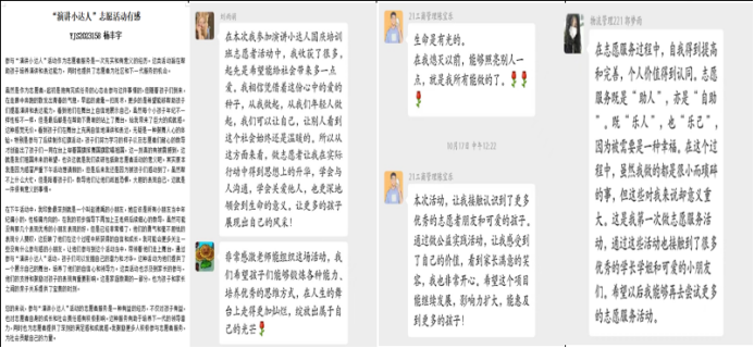 志愿者通过农村留守儿童演讲小达人团队结识了很多不同领域的人士,扩大了自己的人际关系网络,并提高了他们的团队协作和沟通能力,培养了学生的社会责任感和公民意识,志愿者在为农村留守儿童提供服务的过程中,往往也经历了自我成长和认知的提升。这有助于促进他们更为成熟和全面发展。