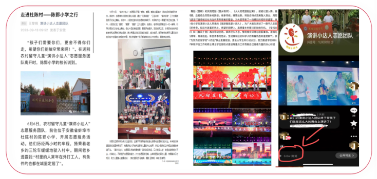 优势:农村留守演讲小达人团队通过互联网公益平台,促进家长关注留守儿童,增强家长家庭责任感;让更多社会群体关注到农村留守儿童,提高农村留守儿童的社会可见度,激发更多社会“好心人”的善意;使当地政府更加重视留守儿童和其外出务工父母两大群体,从而出台关爱当地留守儿童的政策,并想出更多吸引其外出务工父母“回流”的对策。